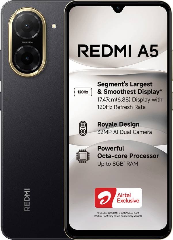 Showcasing the Redmi A3X: a stylish and innovative device. It is a visual joy thanks to its innovative premium Halo design and thin 8.3mm flat frame. Experience a cinematic display on this huge 17.04 cm (6.71) screen with a smooth refresh rate of 90 Hz and Corning Gorilla Glass protection. Safe and rapid access is guaranteed by the Face Unlock feature and the side-mounted fingerprint scanner. Multitasking and storage are effortless with up to 128 GB of extendable storage and 4 GB of RAM (plus 4 GB of virtual RAM). With the 8 MP AI dual camera and vintage film filters, you may take beautiful pictures. Powered by a Type-C charger and a 5000 mAh battery, you can use it all day. Take pleasure in superiority with the Redmi A3X.